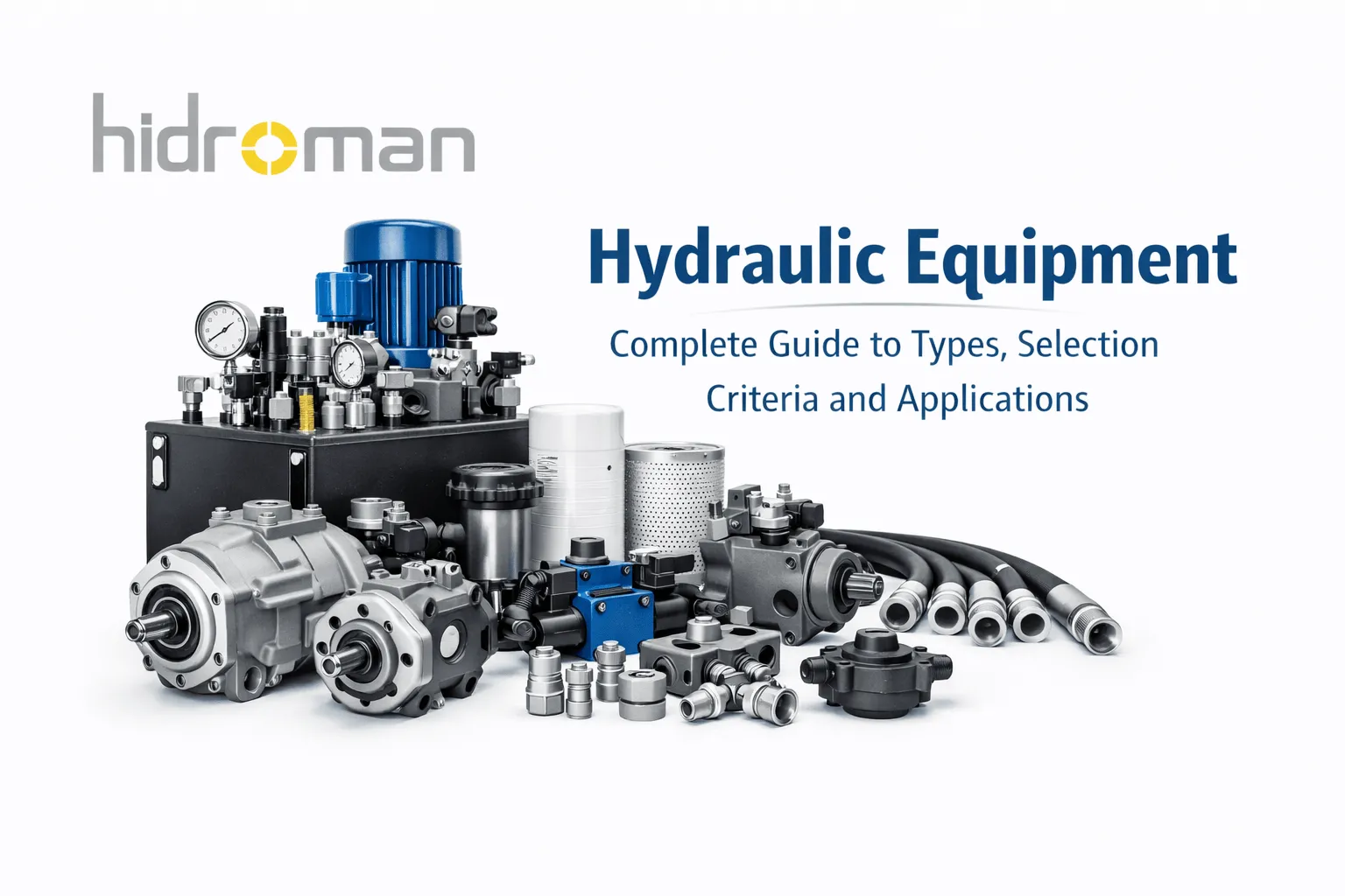Hidrolik ekipmanlar, basınçlı hidrolik yağın mekanik enerjiye dönüştürülmesi ve kontrolünü sağlayan tüm bileşenleri kapsar. Basitçe ifade etmek gerekirse hidrolik sistem; enerji üretir, iletir, kontrol eder ve hareket üretir. (hidroman.com.tr)