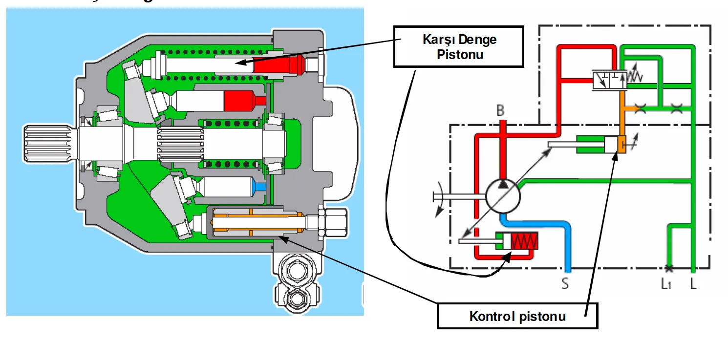 HD Kontrol: Hidrolik pilot basıncı ile deplasman kontrolü.
