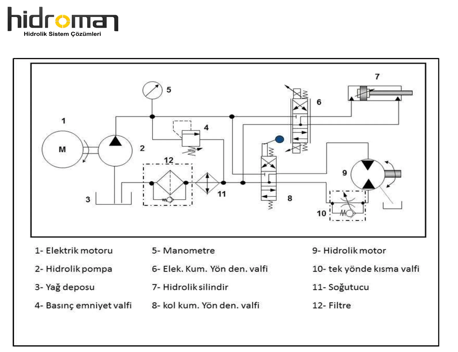 Bir hidrolik şemaya baktığınızda karşınıza çıkacak en yaygın gruplar şunlardır: